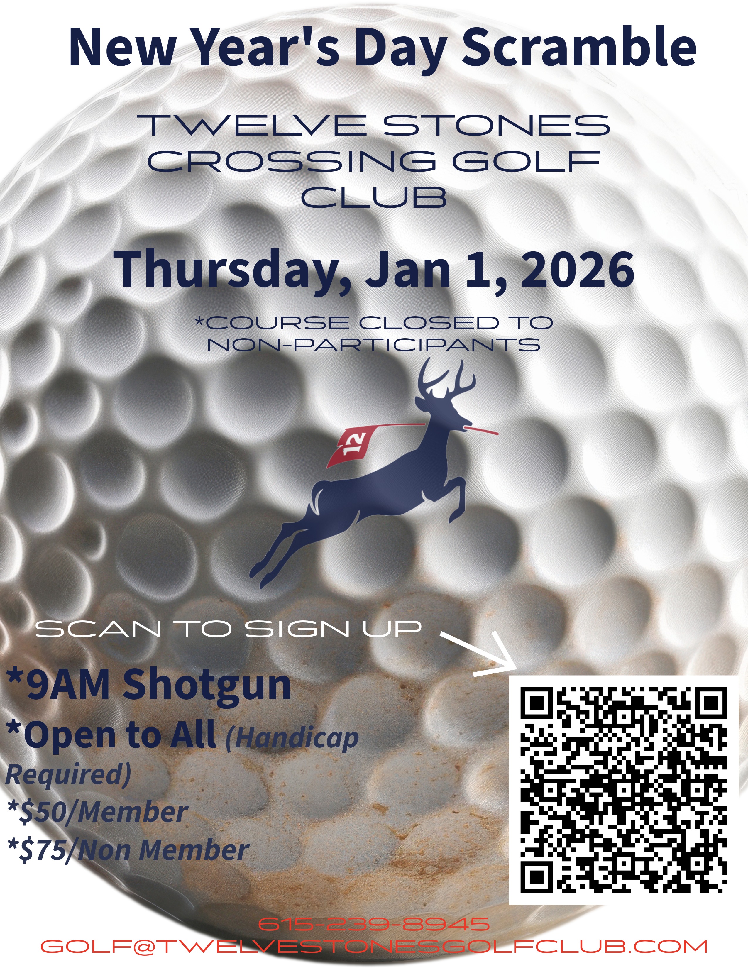 9AM Shotgun Open to All (Handicap Required) $50 Member $75 Non Member Sign up: https://manager.gallusgolf.com/Register/81468/2026-new-years-day-2-man-scramble |